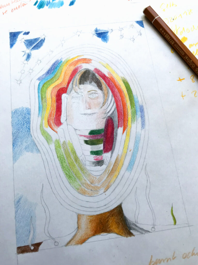 Plötzlich war es da … das Reiskornkind. Es wuchs aus einer Kindheitserinnerung heran, von der ersten Skizze ca. 3,5×4,5 cm zu einem üppigen 😉 ungefähren Postkartenformat. Es wurde farbig, es spitze seine Ohren. Und zu guter Letzt erzählte es (s)eine Geschichte. Die findet man am anderen Ort.
