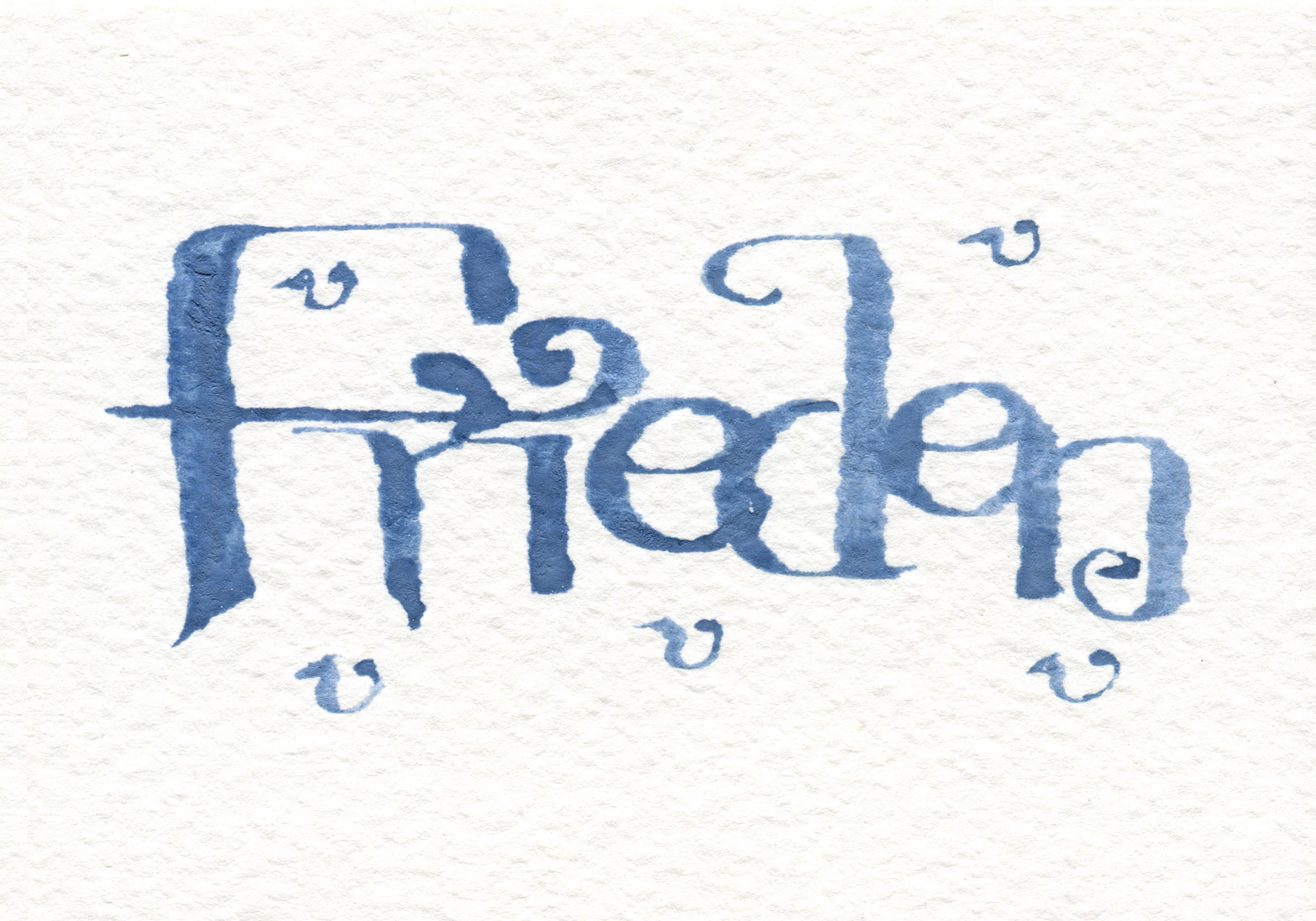 In meinem selbstgestalteten Kalender, für den ich Worte frei kalligrafiert habe, zeigt das erste Blatt das Wort: